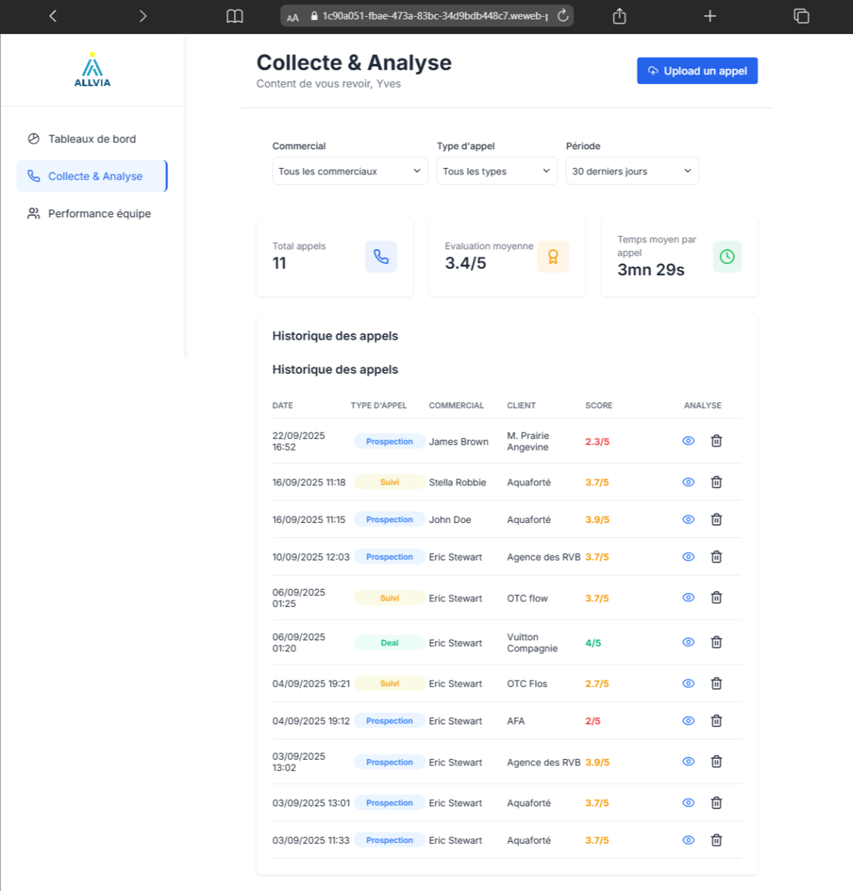 Allvia.ai a transformé notre coaching commercial. Le temps consacré à la formation des commerciaux est optimal. Nous avons amélioré la performance des juniors et augmenté les confirmations d’embauches, à moindre coût .